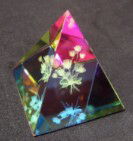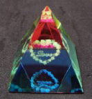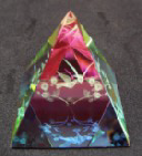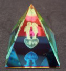 beautiful laser crystal pyramid, reflecting rainbows as the light shines from many different angles