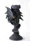 a detailed resin candlestick with a gothic dragon entwined around the candle holder stem.