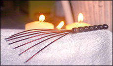 made from copper with a dark wood handle. an excellent aid to relaxation.